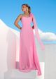 Vestido Longo Musseline Nula Manga c/ Detalhe Floral Rosa