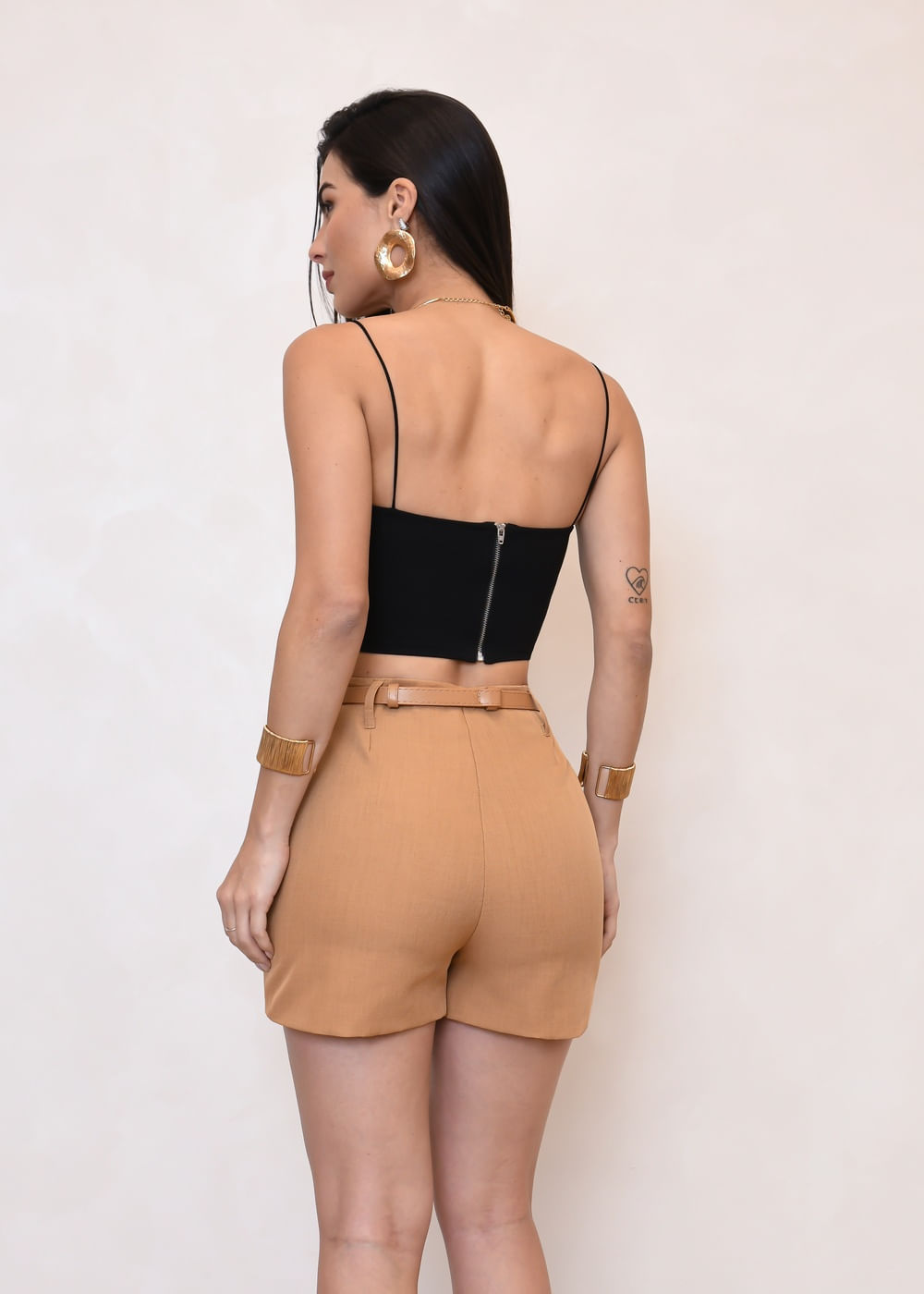 Cropped Alça Fina Ponto Roma - PRETO
