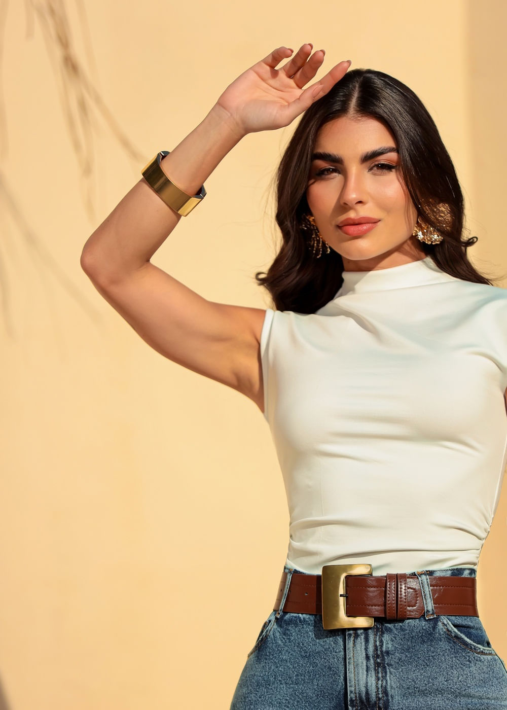 Blusa Muscle Tee de Gola Alta - OFF WHITE