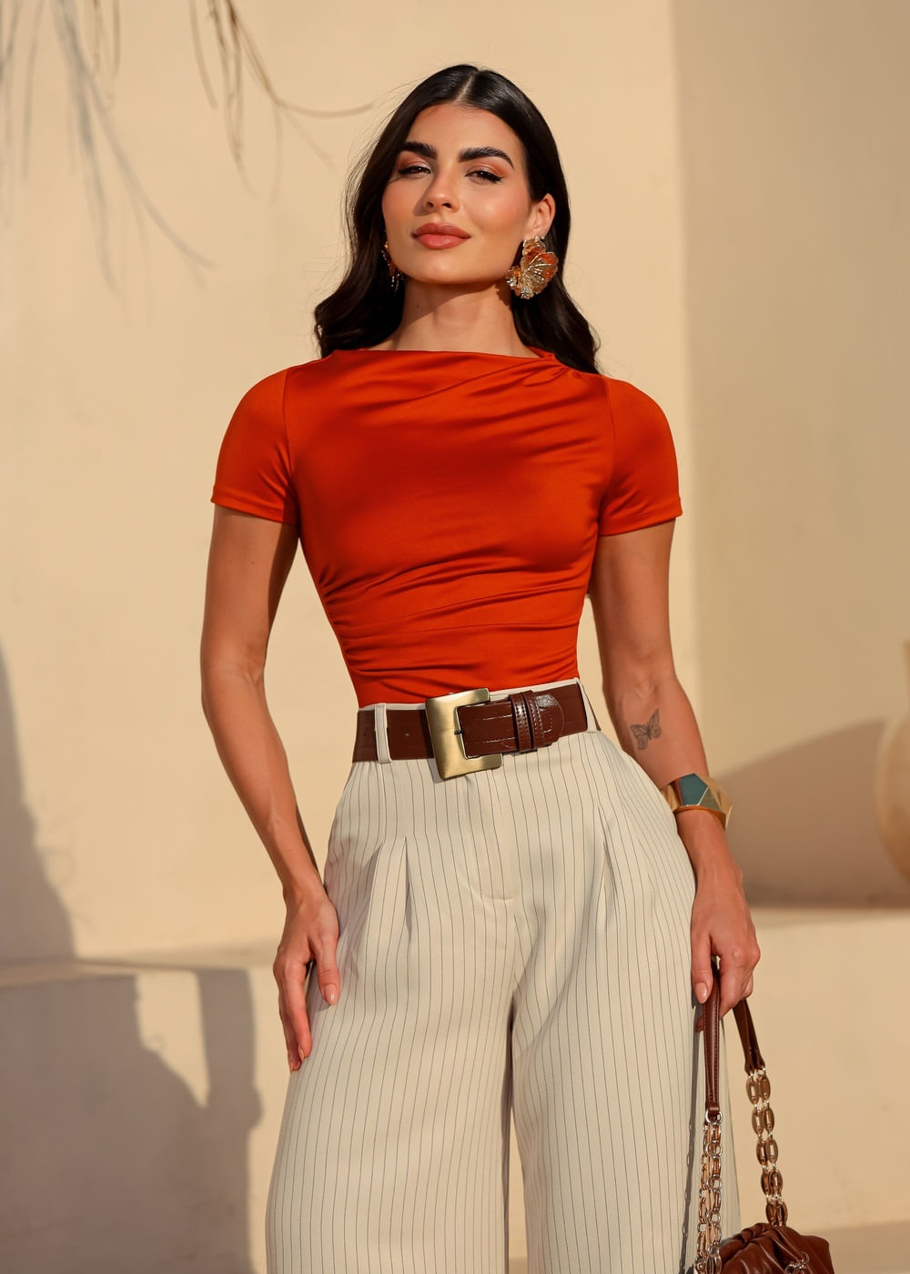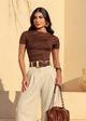 Blusa Suplex Manga Curta c/ Pregas Laterais - TERRACOTA