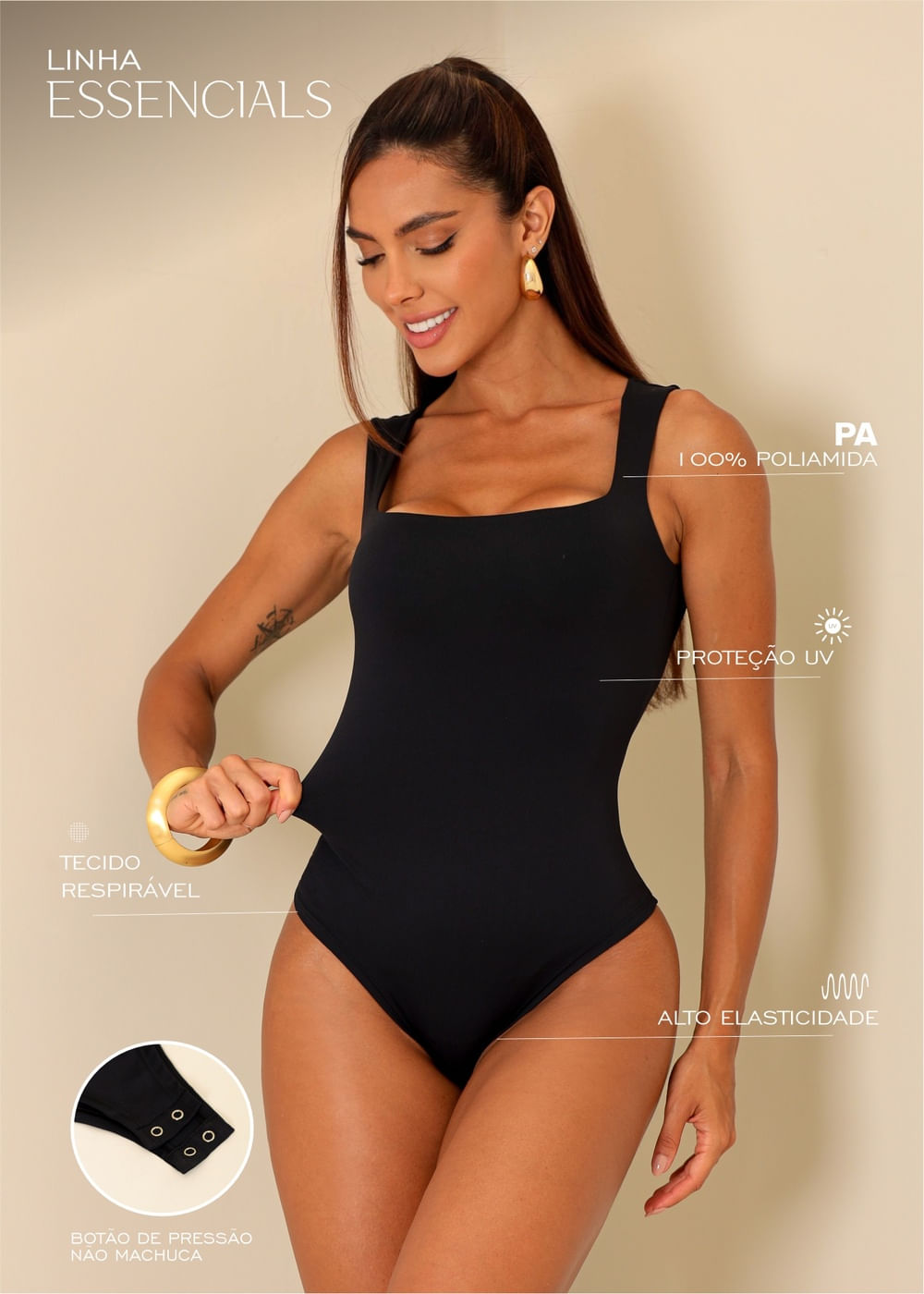 Body Basic Regata Decote Quadrado Poliamida Premium Preto - PRETO
