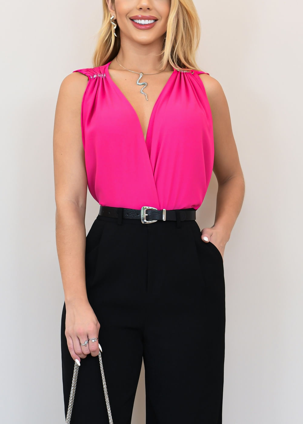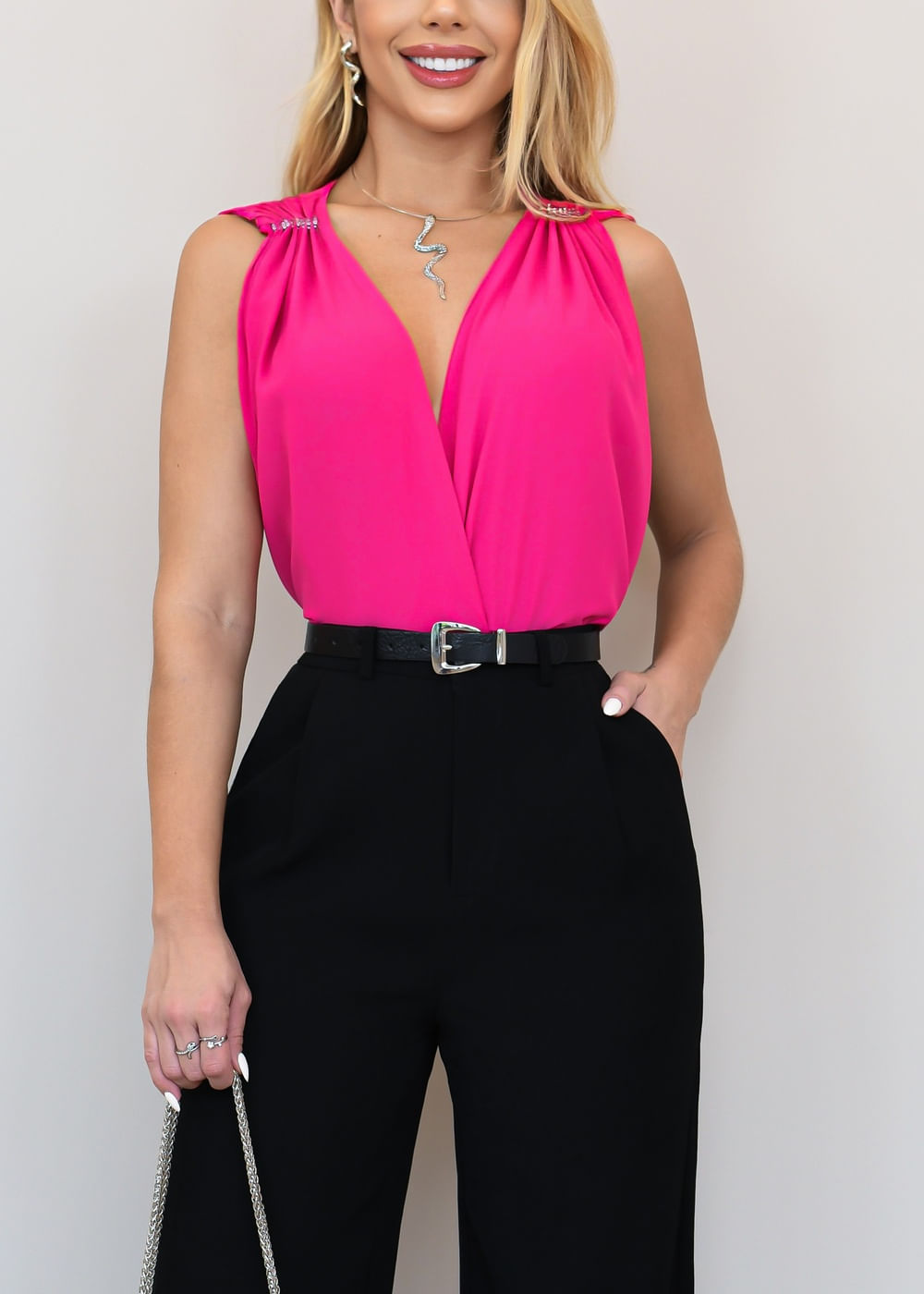 Roupas por categoriaBodyBlusasBody Decote Profundo Franzido Fluid