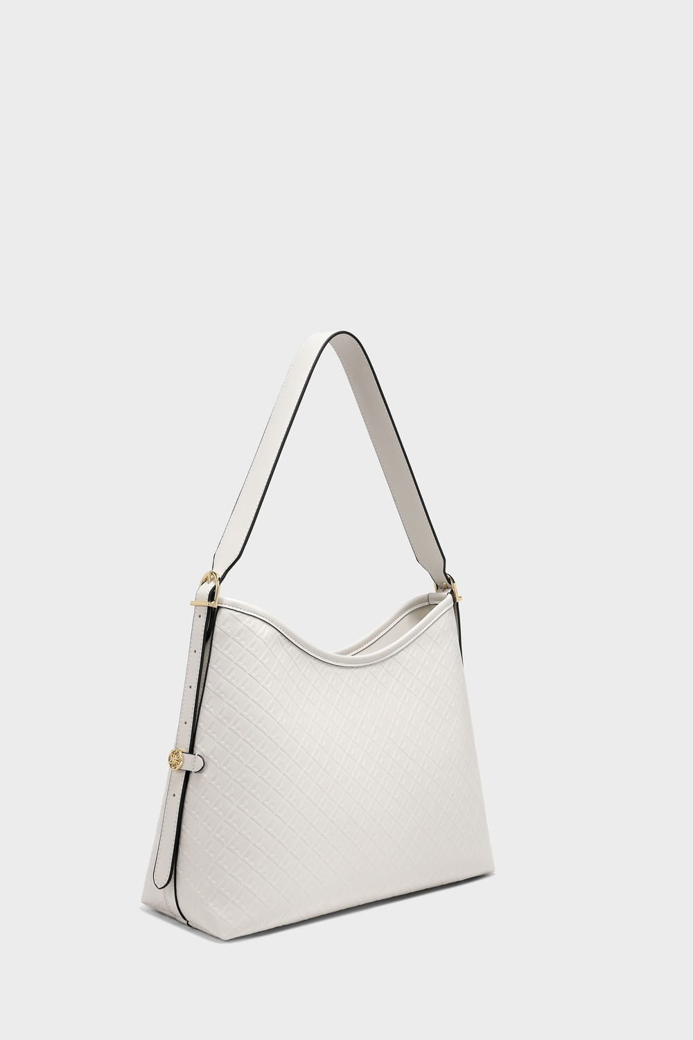 Bolsa com textura tramada e acabamento sofisticado.