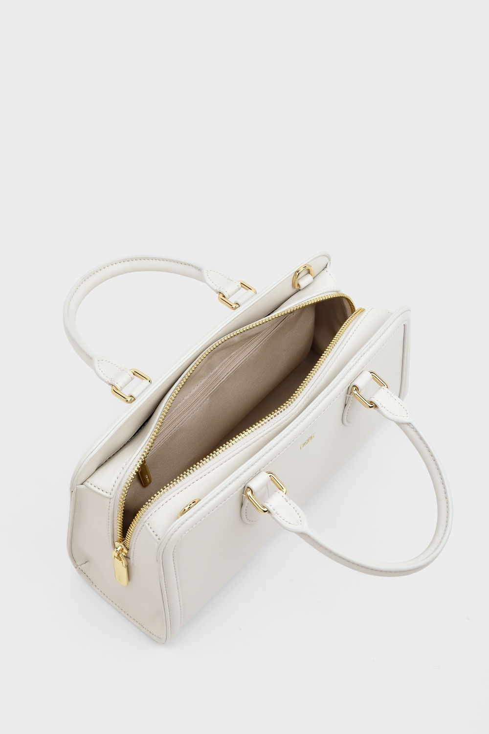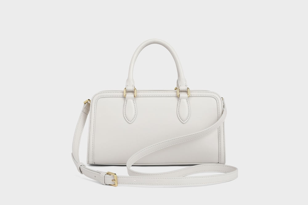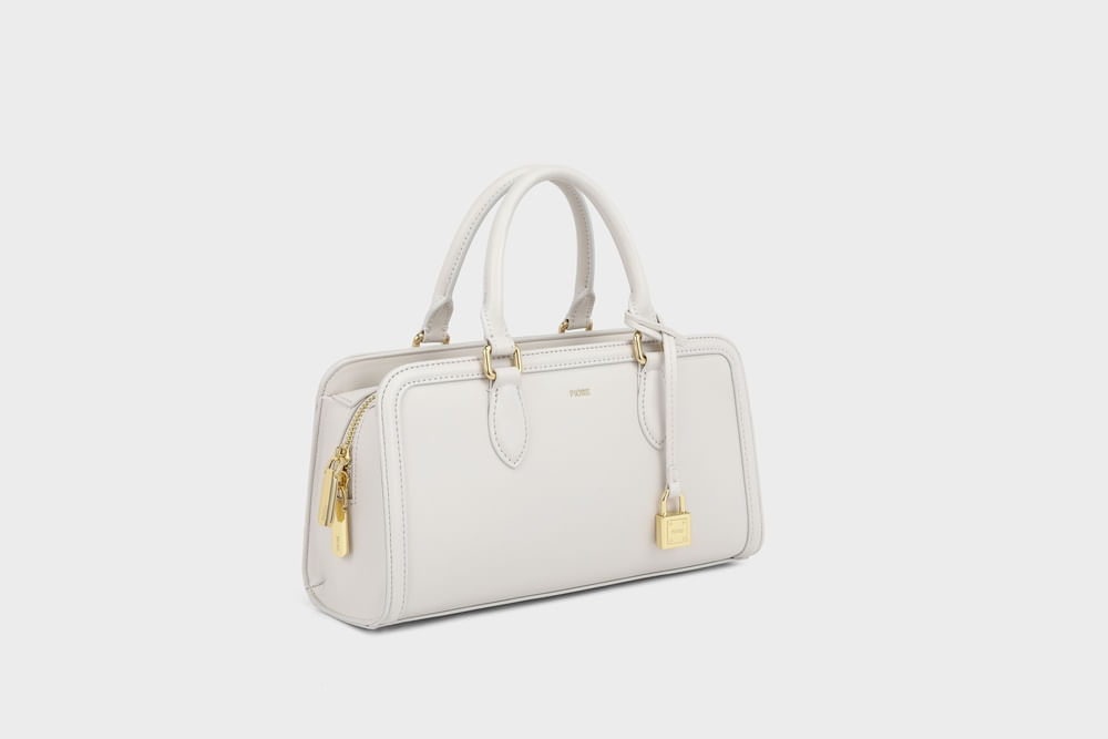 Bolsa com design estruturado e acabamento minimalista. Possui alças de mão, fechamento superior em zíper e alça transversal removível para maior versatilidade.