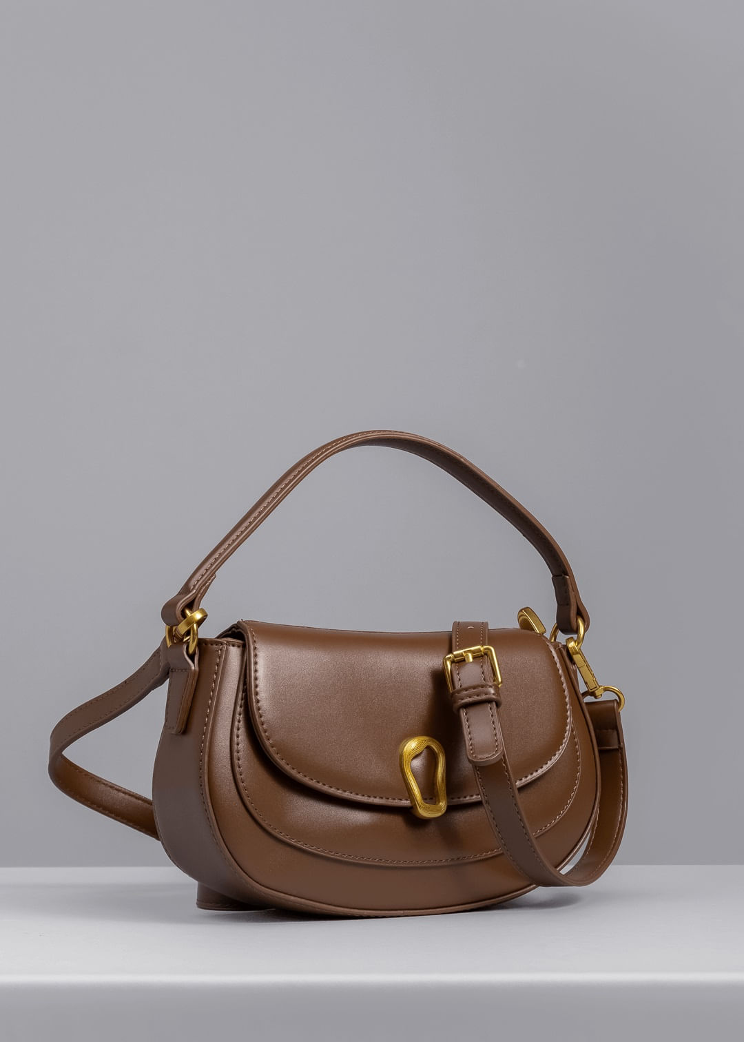 Bolsa Saddle Detalhe Orgânico - MARROM