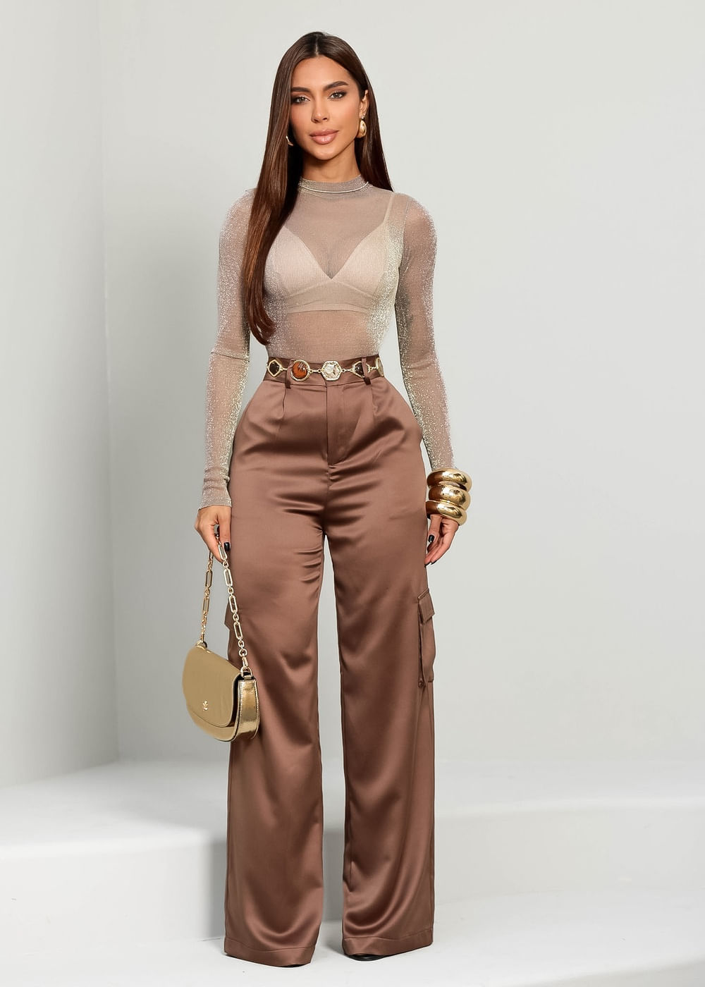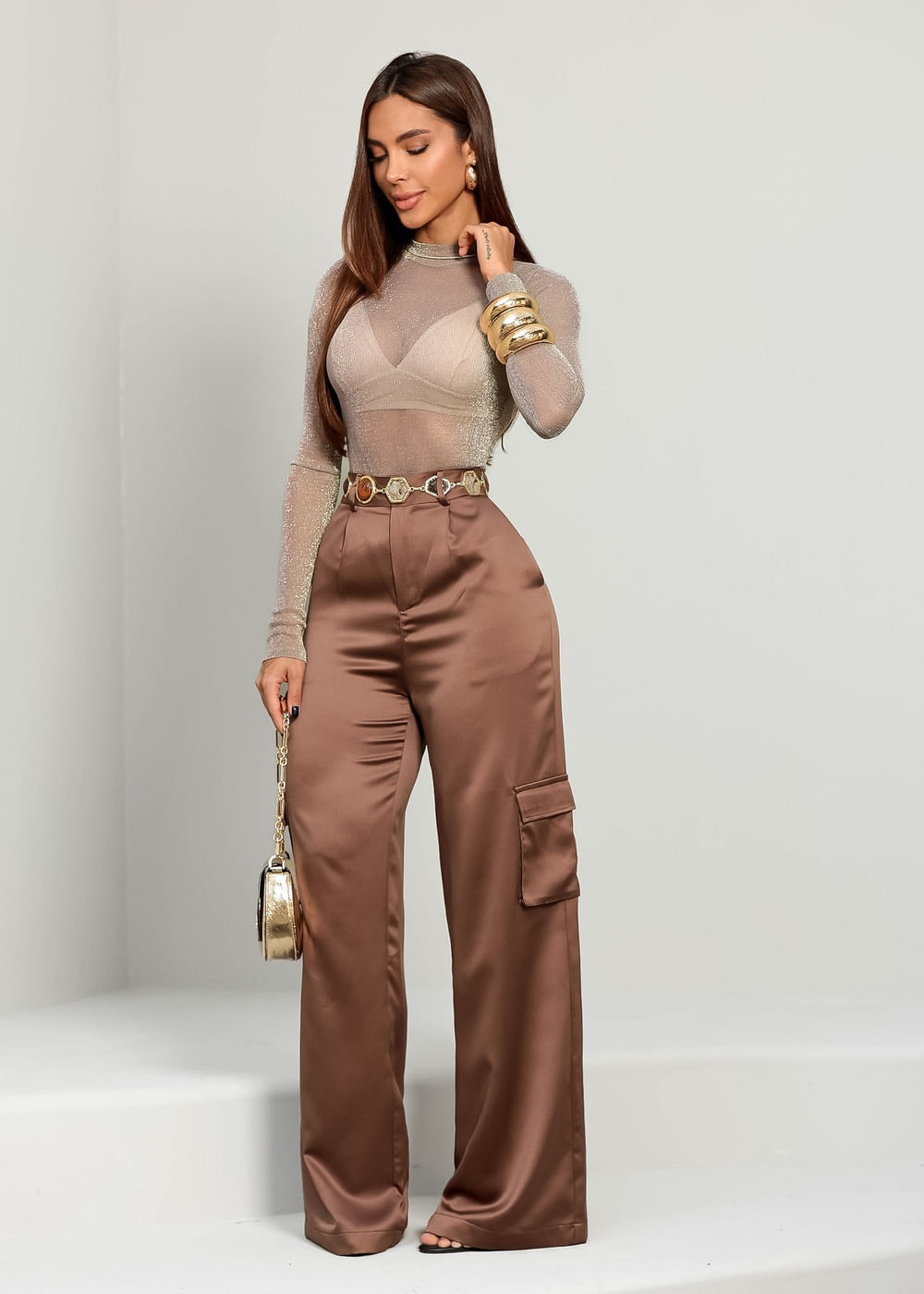 Roupas por categoriaCalçasCalça Cargo Alfaiataria Marrom