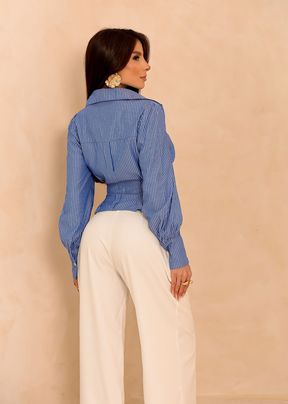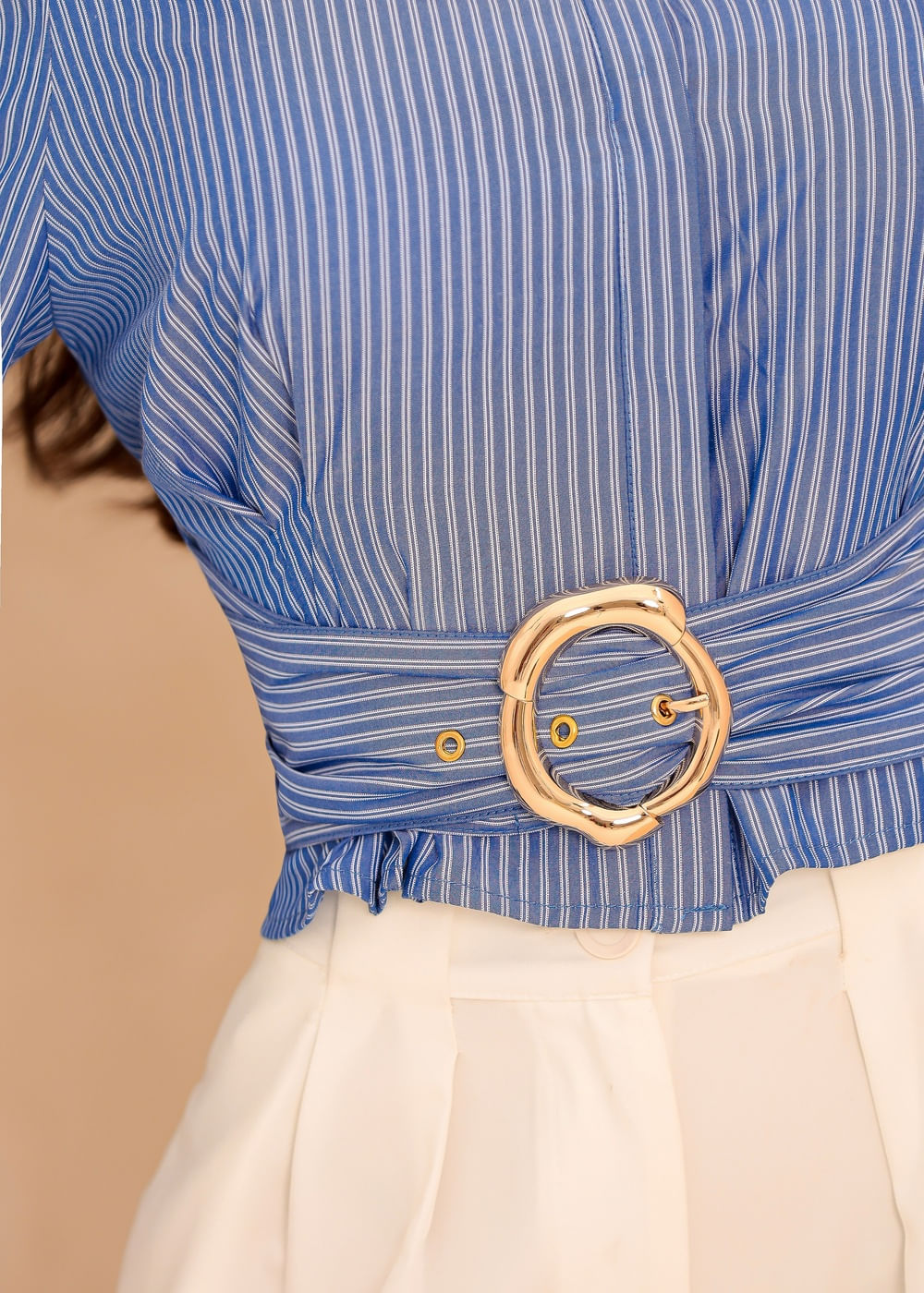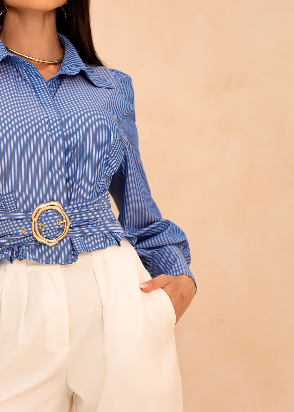 Camisa Cropped Cintura Ajustada c/ Fivela - AZUL