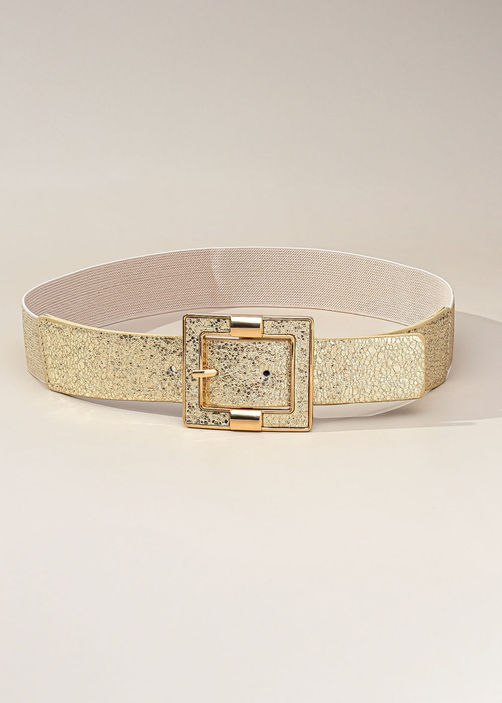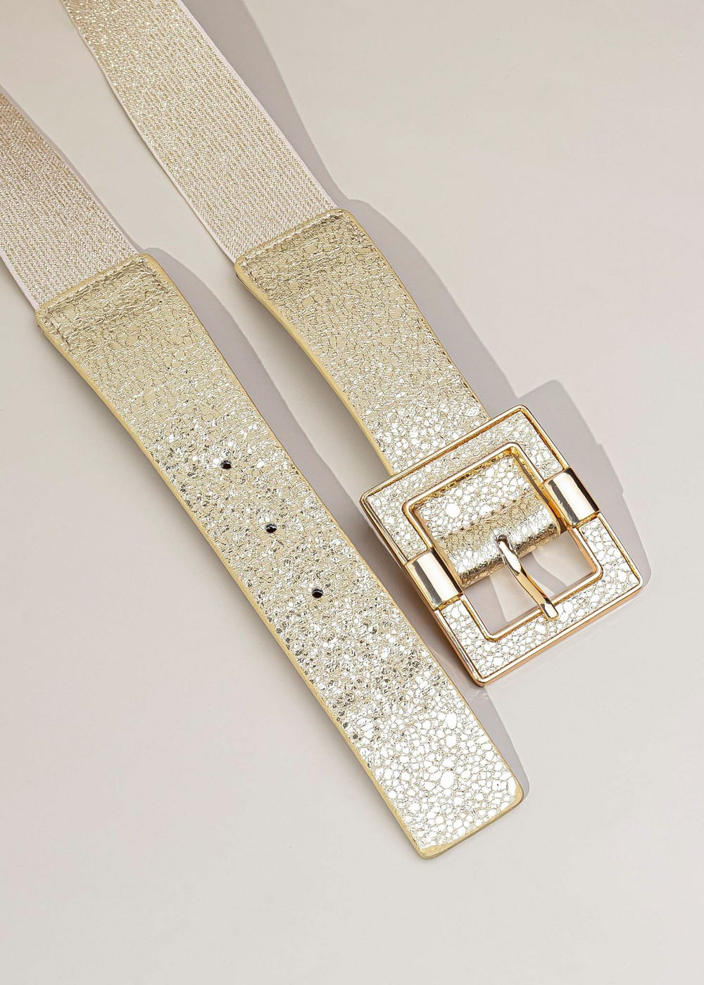 Cinto Elástico Metalizado Fivela Quadrada - DOURADO