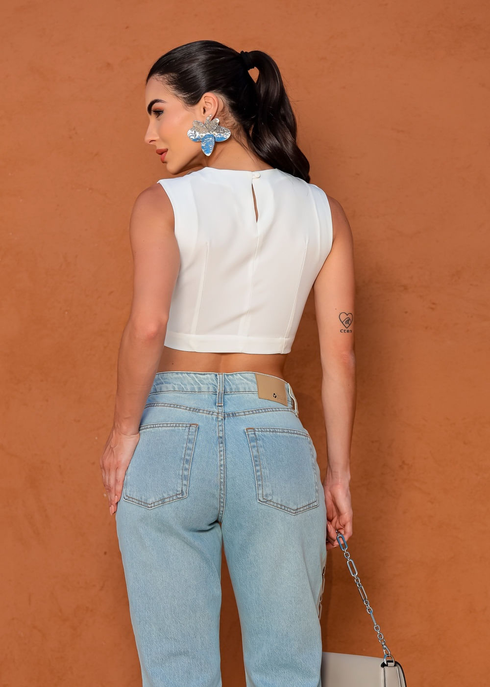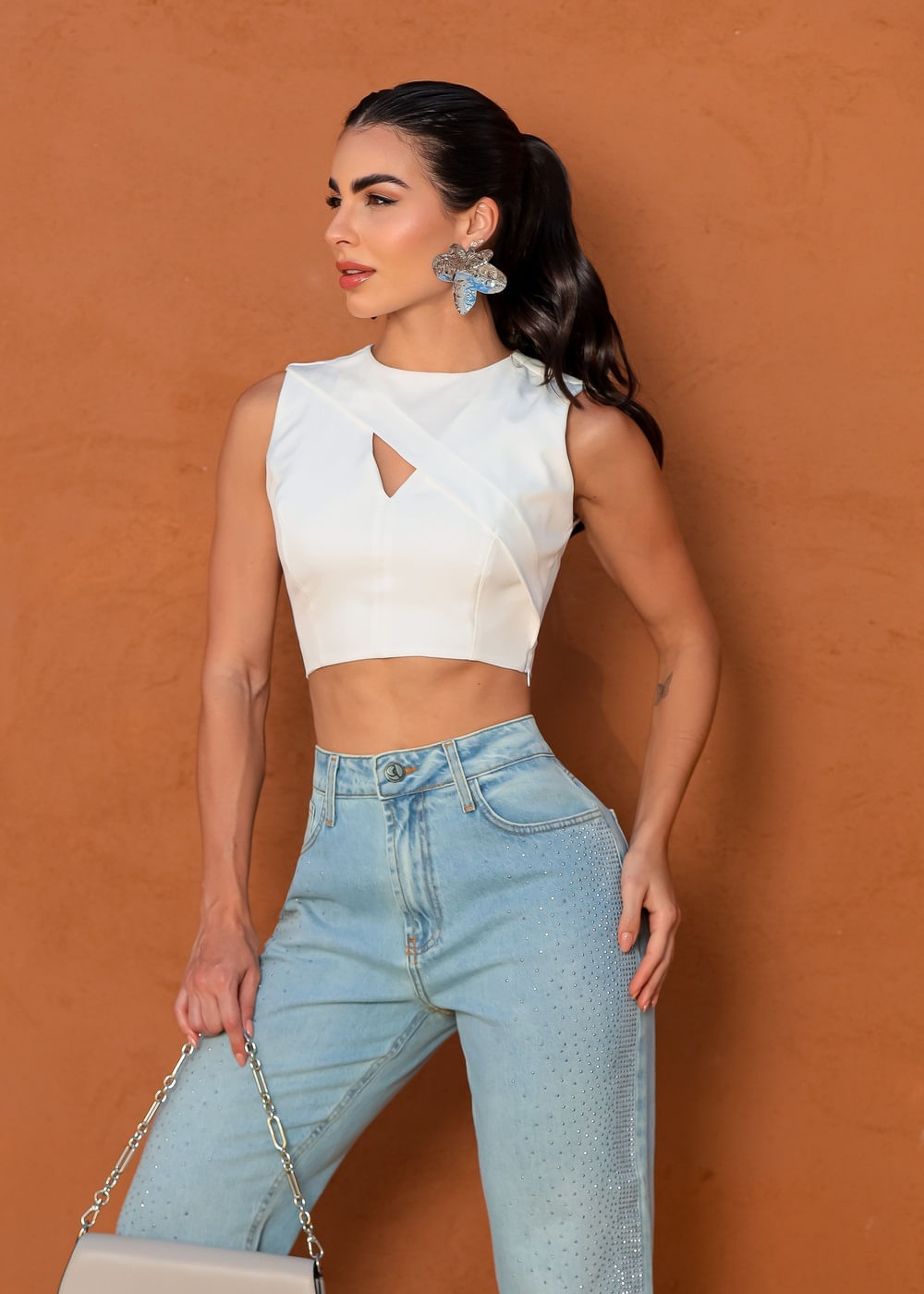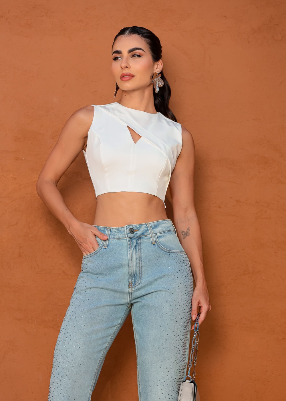 Cropped Regata c/ Recorte Transpassado - OFF WHITE