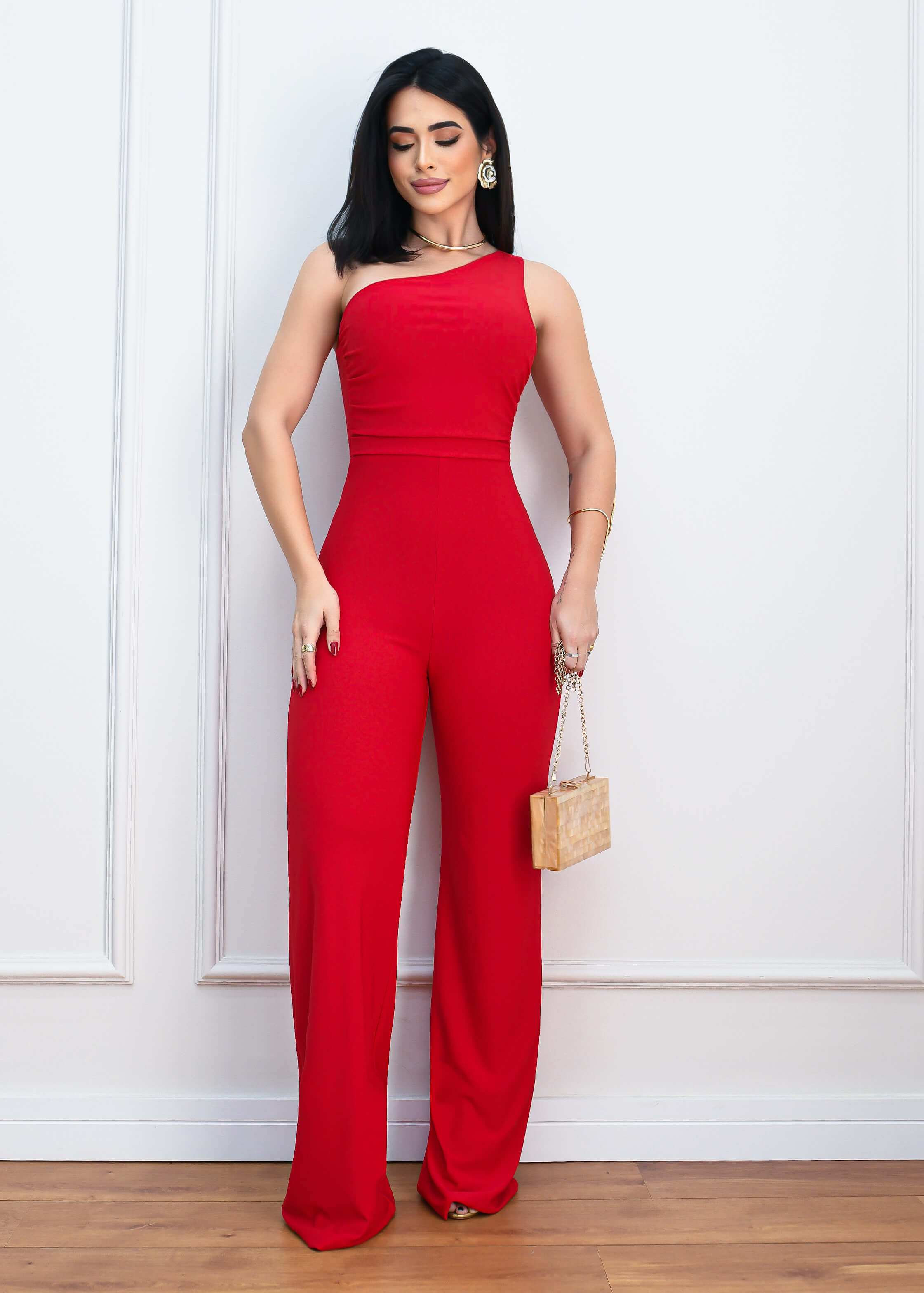 Macacão Longo Nula Manga Franzido Side - VERMELHO