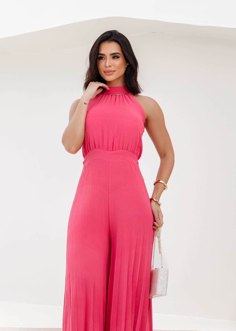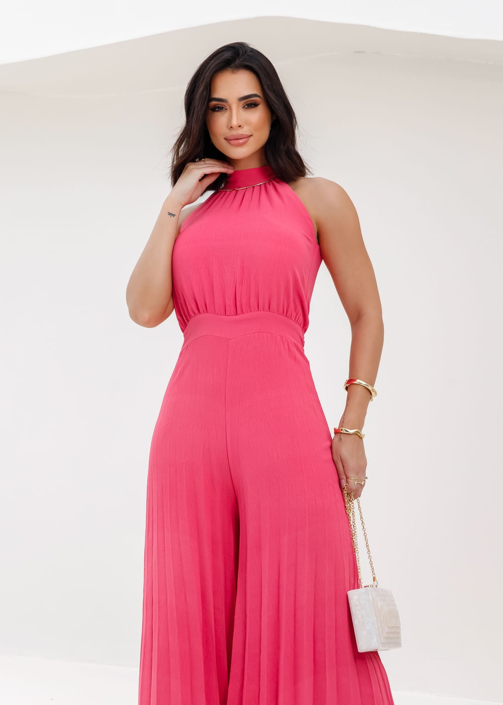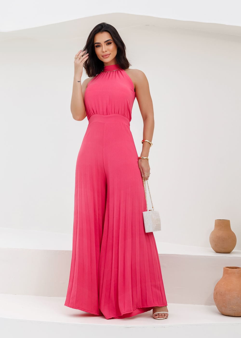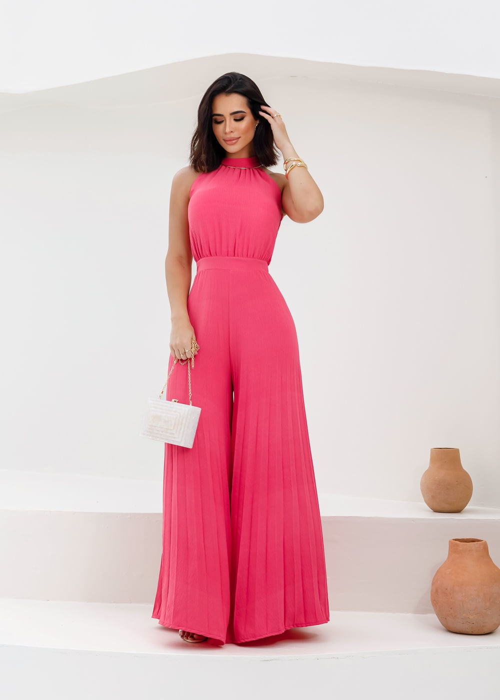 Macacão Pantalona Plissado Amarração Costas - CORAL