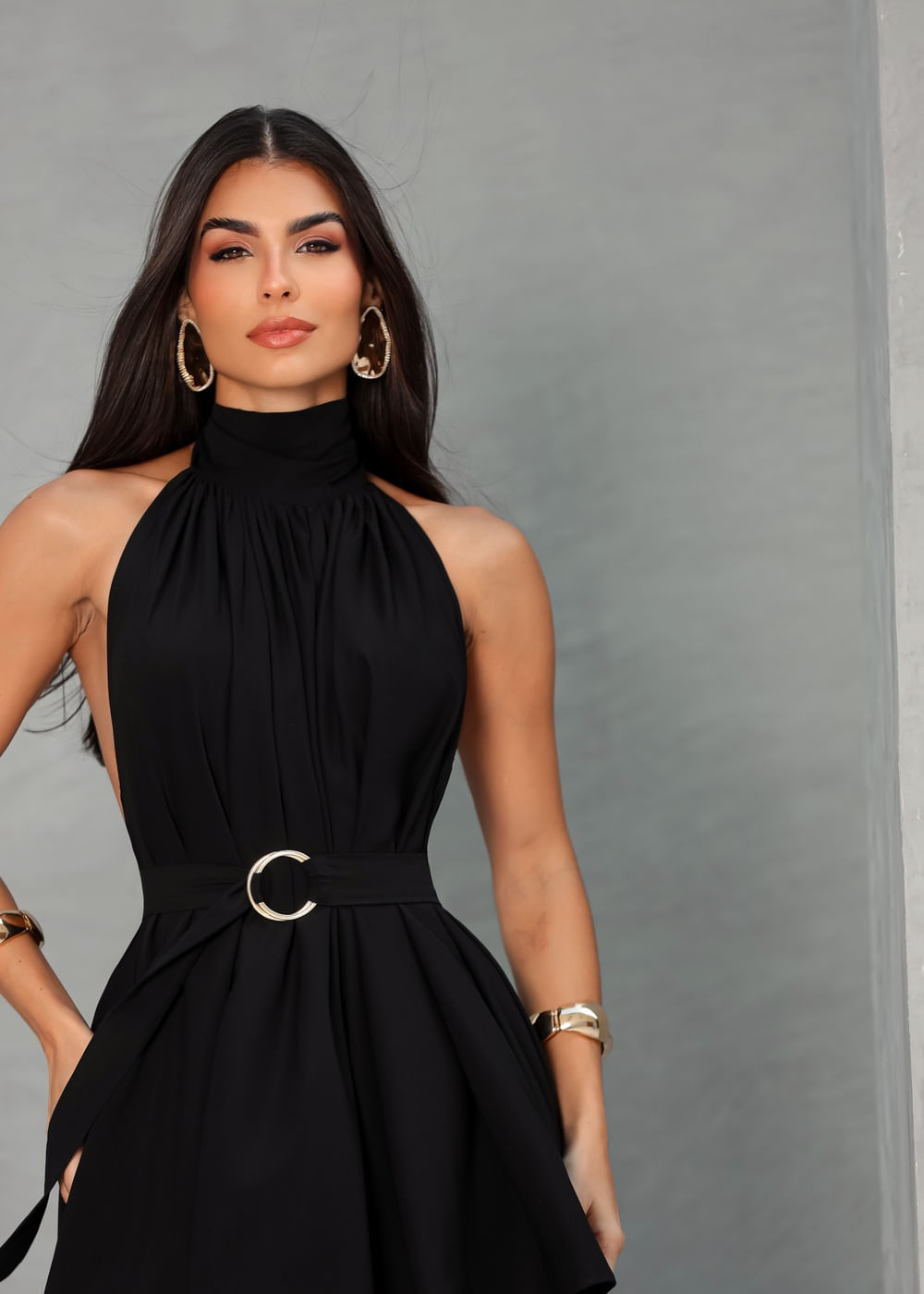 Vestido Curto Frente Única c/ Cinto Preto - PRETO