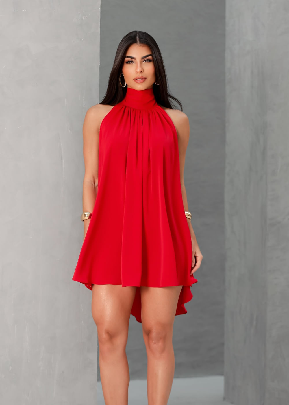 Vestido Curto Frente Única c/ Cinto Vermelho - VERMELHO