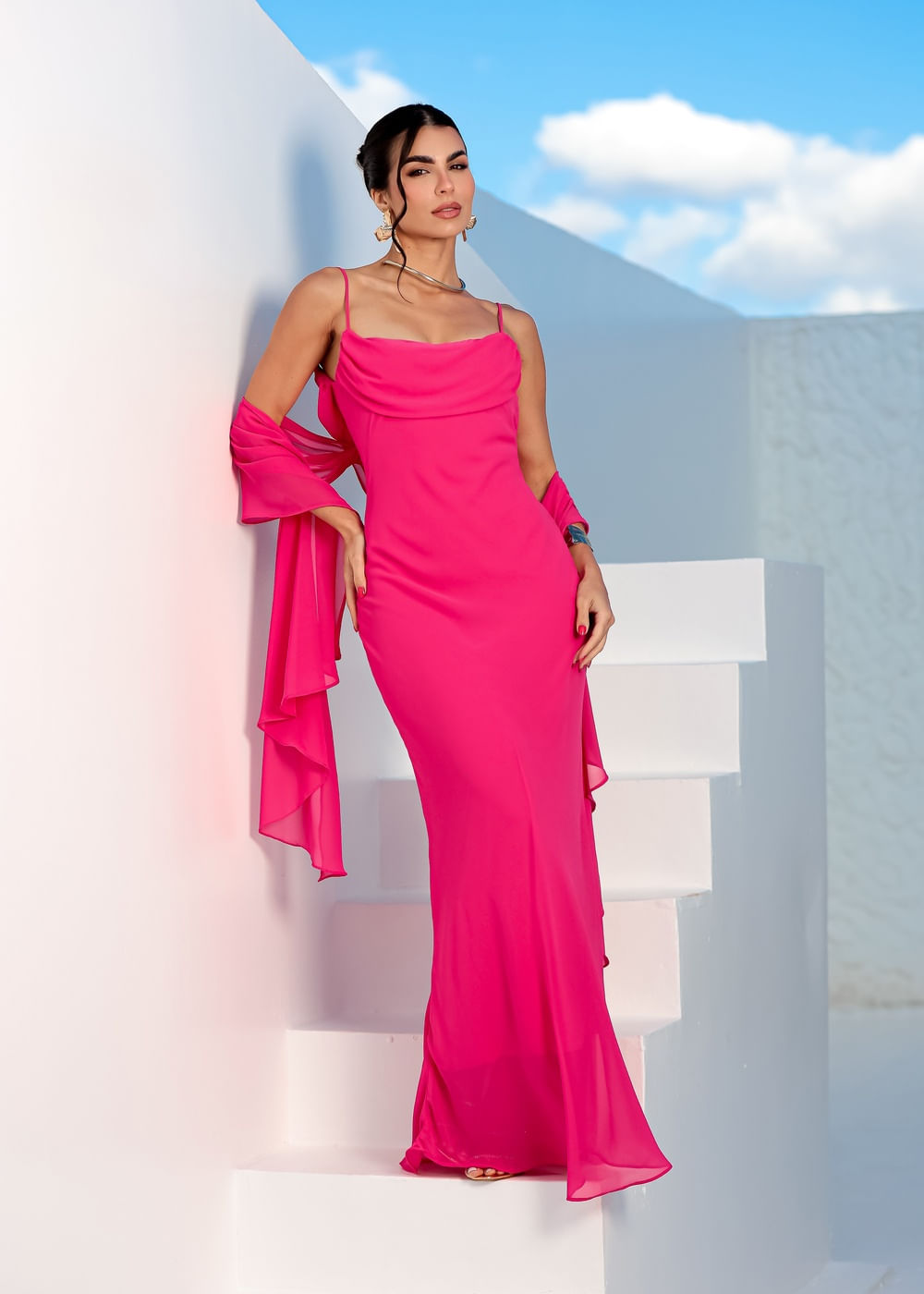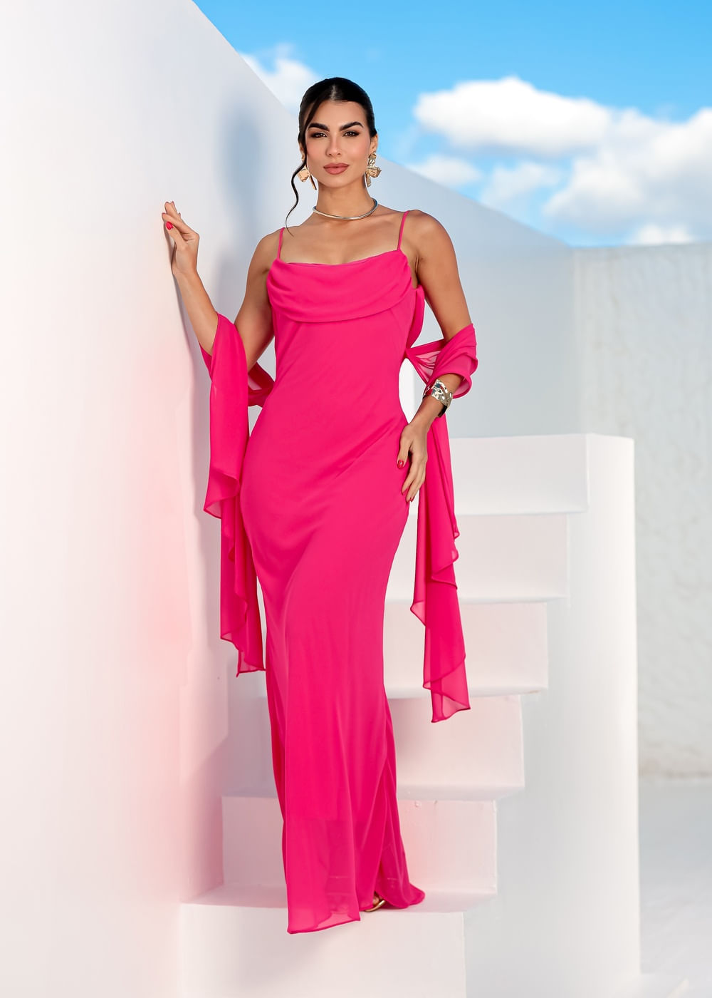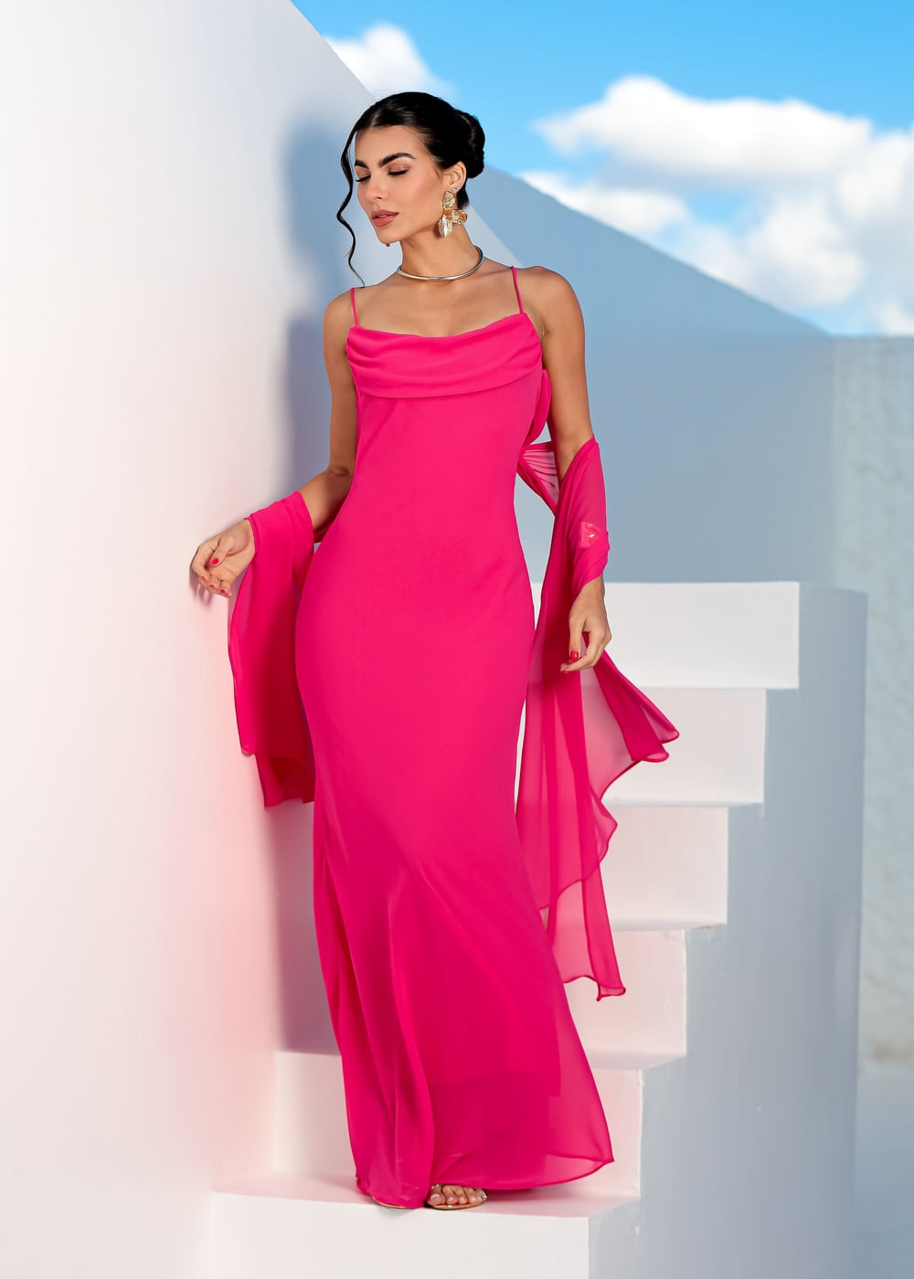 Vestido Fluido c/ Decote Meia Taça - PINK