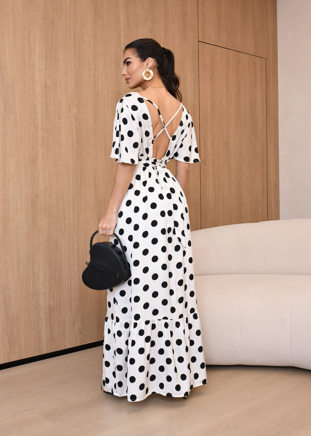 Roupas por categoriaVestidosVestido Longo Casual Poá c/ Amarração