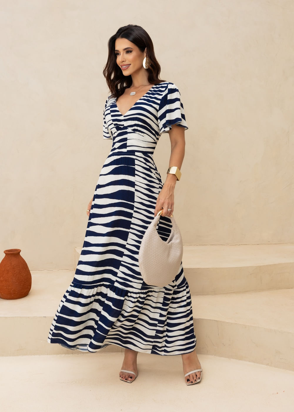 As estampas exclusivas dão personalidade à peça, trazendo modernidade e sofisticação em composições únicas que transformam o vestido em um destaque imediato em qualquer ocasião.