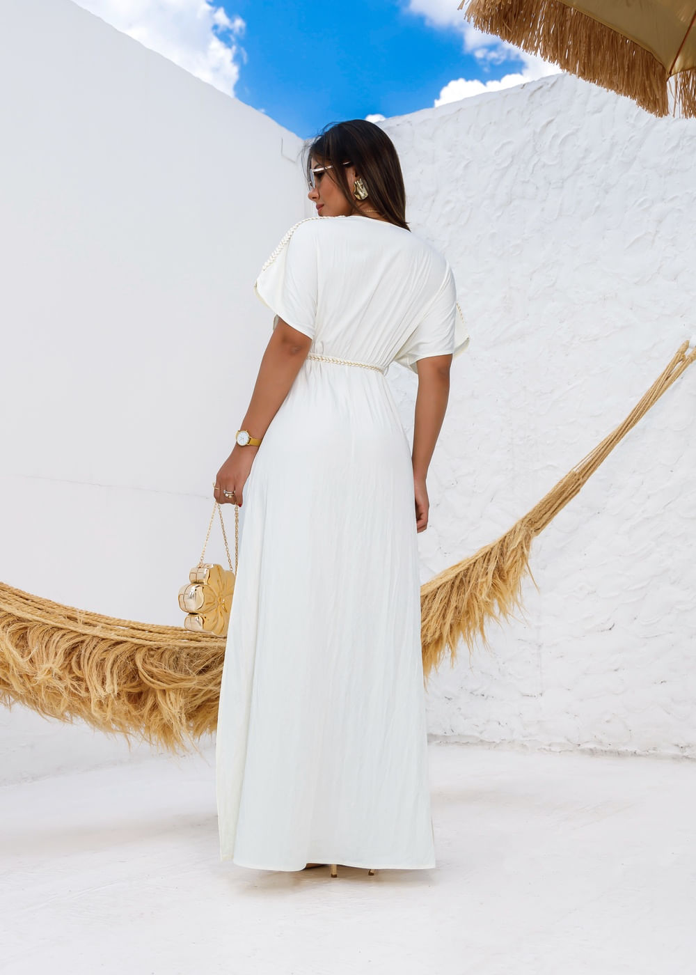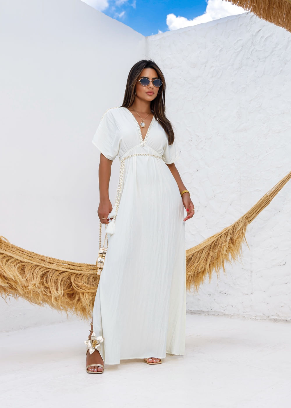 Vestido Longo Fenda Loose - CREME