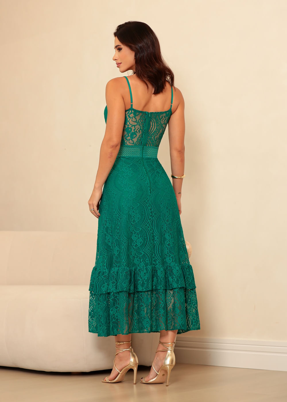 Roupas por categoriaVestidosVestido Longo Renda c/ Guipir Entremeio Verde Esmeralda