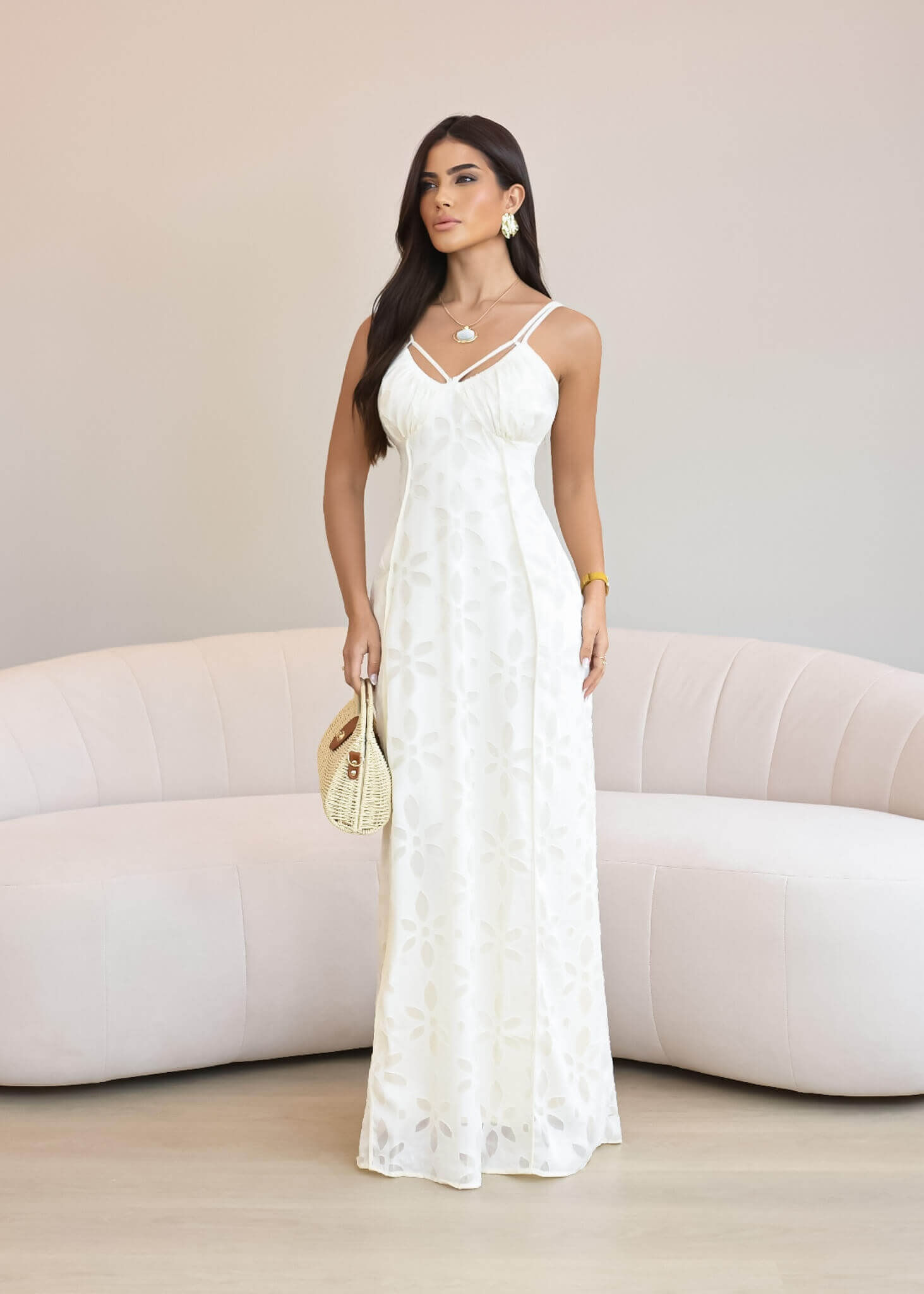Vestido Longo Textura Floral