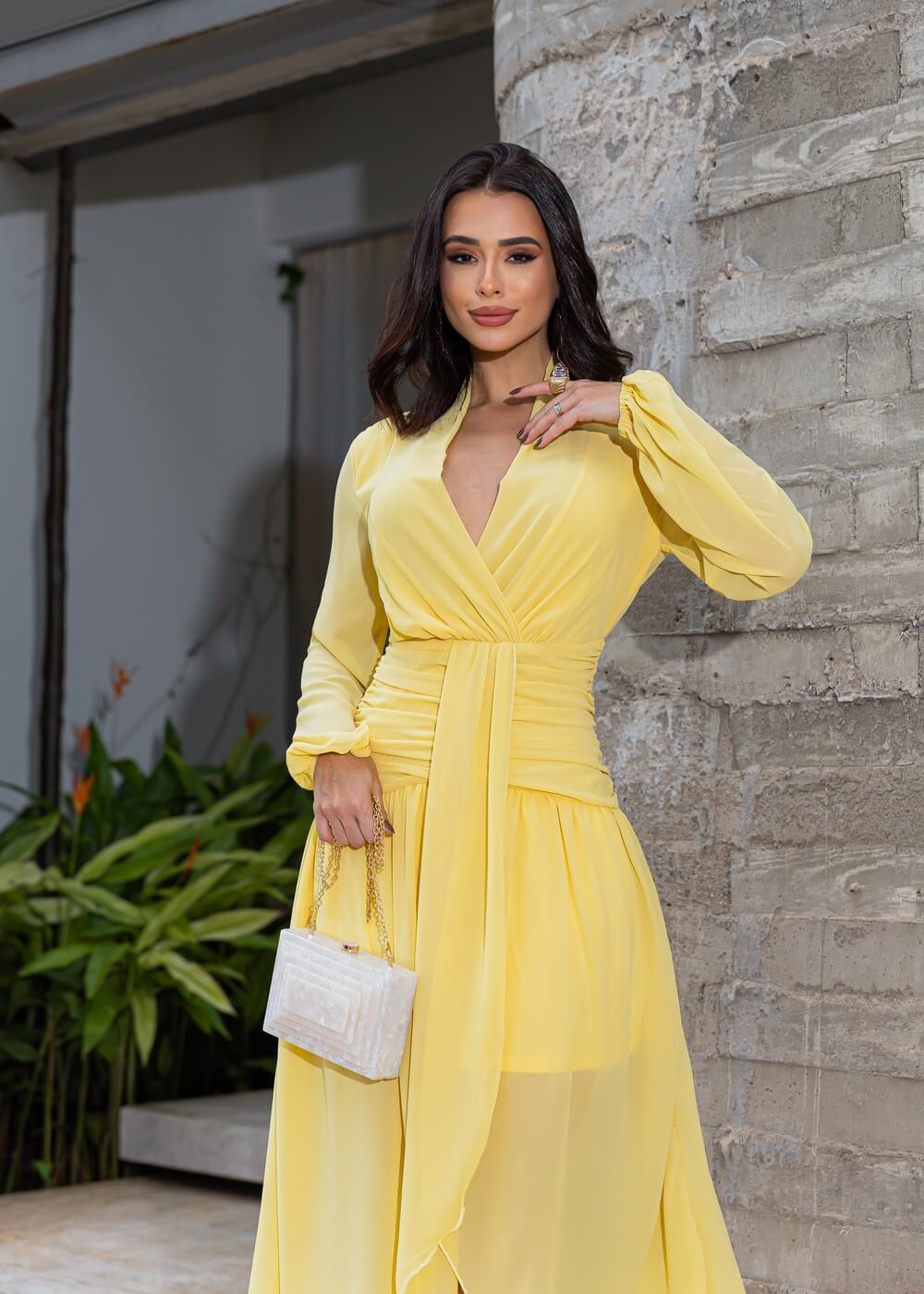 Vestido Manga Longa Mullet Assimétrico - AMARELO